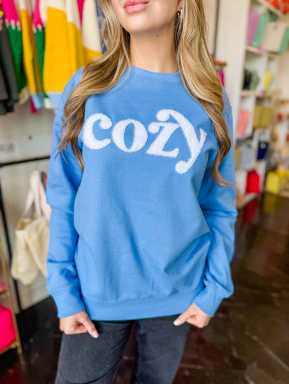 This Cozy Vibes Fuzzy Sweatshirt is THE sweatshirt for ALL winter long!! Picture cuddling up next to the fire with a good book in it !! We are in LOVE!!