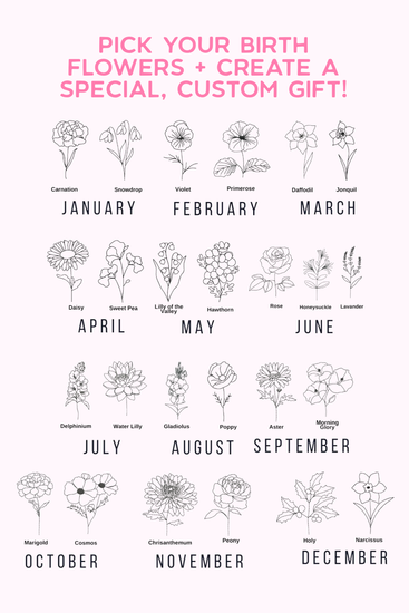 Our custom embroidered birth flower sweatshirts are the PERFECT custom mom or grandma gift!! Pick your birth flowers, add initials to the bottom, and create a one of a kind, custom embroidered gift just for them! Want to just pick your flowers to make a cute sweatshirt? That's fine too! ;)