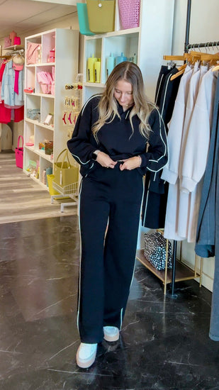 Luxe Black/Cream Piping Modal Straight Leg Pants