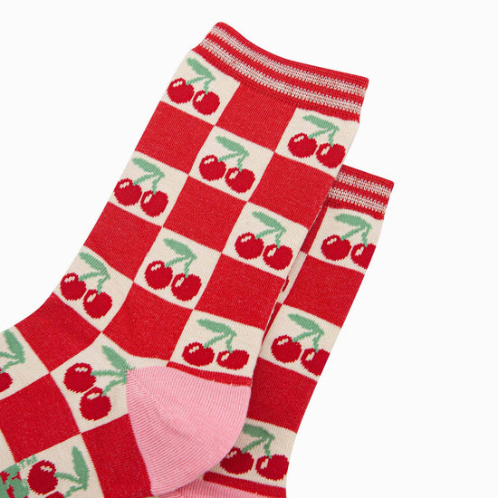 Women's Bamboo Socks - Cherry Checker