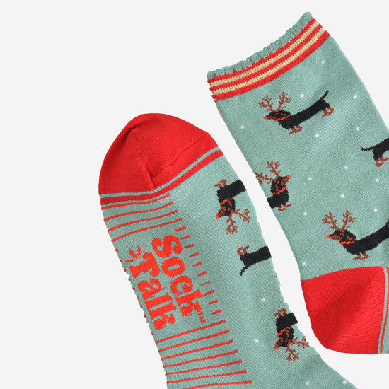 Women's Bamboo Christmas Socks - Dachshund Reindeer